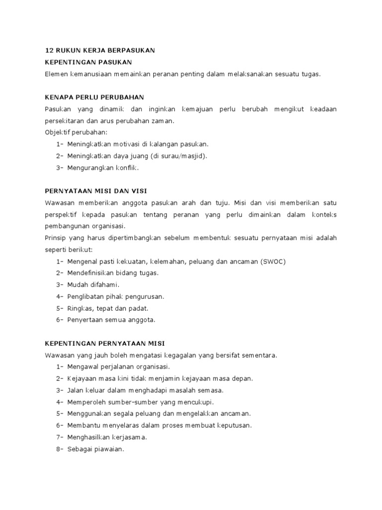 Asas kepada kejayaan kerja berpasukan ialah organisasi harus mempunyai budaya kerja masing-masing supaya kepercayaan nilai dan. Pemantau dan penilai 3. Hala tuju dan perjanjian yang jelas mengenai misi dan tujuan ini.